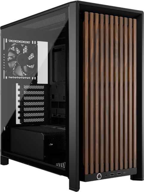Кутия Corsair Frame 4000D Wood RS Mid-Tower - Black/Walnut