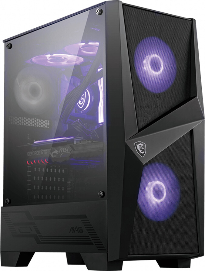 MSI MAG FORGE 100M, Mid-Tower, ATX/Micro-ATX/Mini-ITX, 2x USB 3.2 Gen 1 Type-A, 1x Audio/1x Mic, RGB Hub, RGB Button, 3x 120mm Fans (2x RGB), Mesh Front Panel, Tempered Glass