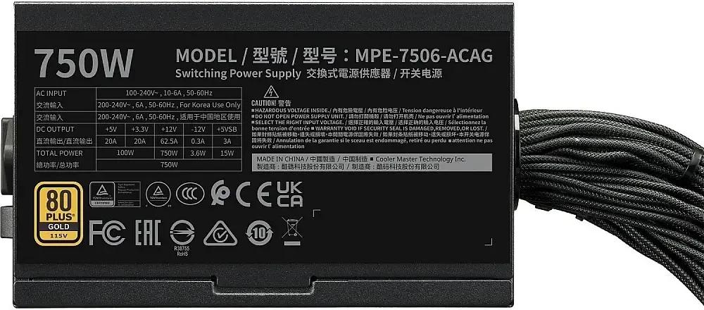 Захранващ блок Cooler Master MWE Gold V3 750W ATX 3.1 Non-Modular