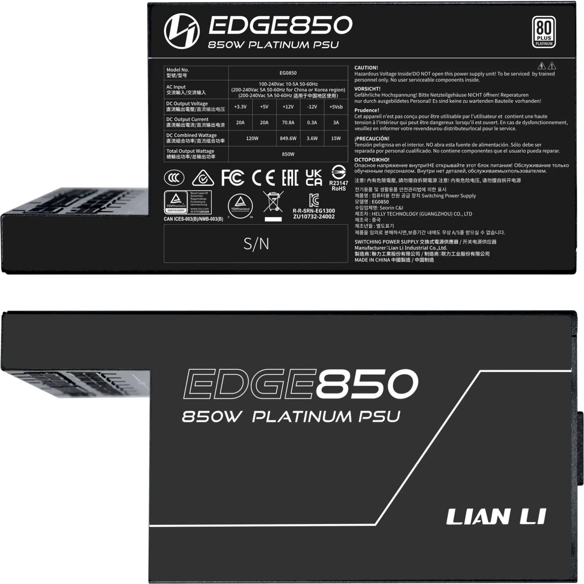 Захранващ блок Lian Li EDGE EG0850 Black 850W 80+ Platinum PCIe 5.1, ATX 3.1