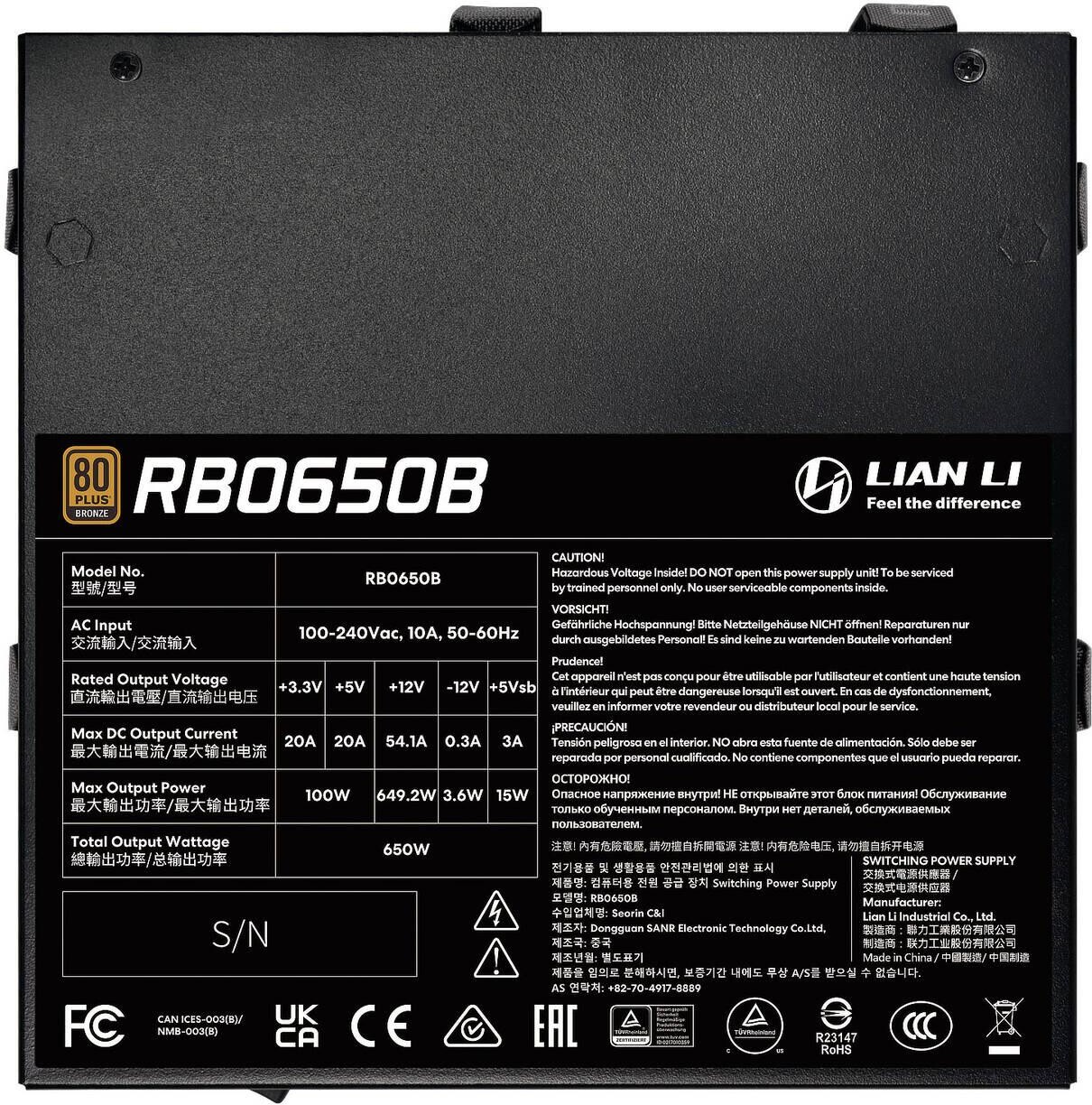 Захранващ блок Lian Li RB650B Black 650W 80+ Bronze PCIe 5.1, ATX 3.1
