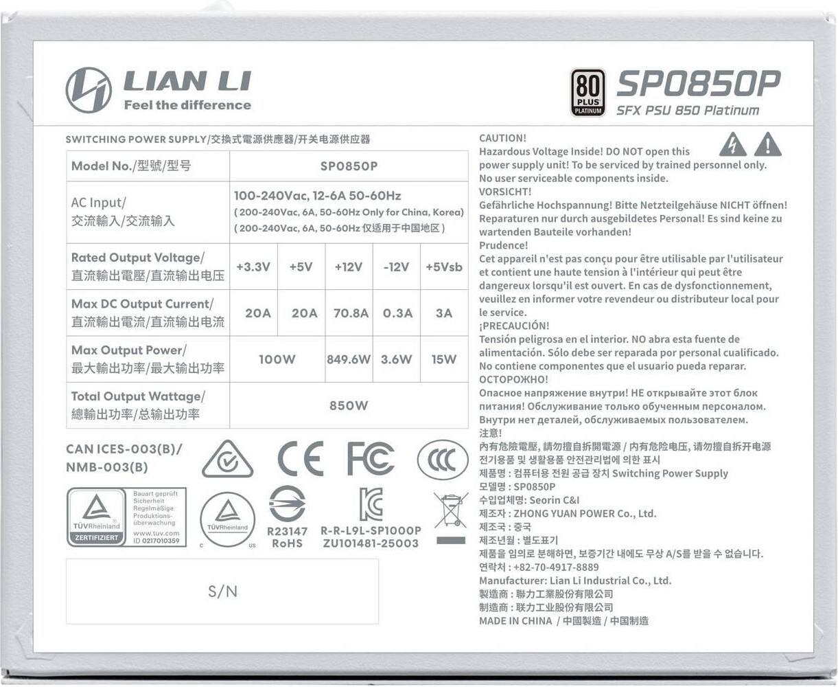 Захранващ блок Lian Li SP850 White 850W 80+ Platinum PCIe 5.1, ATX 3.1