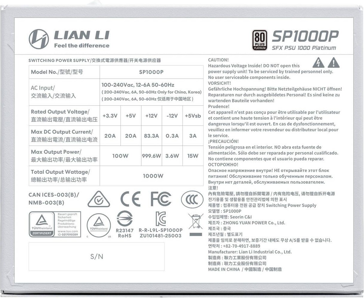 Захранващ блок Lian Li SP1000 White 1000W 80+ Platinum PCIe 5.1, ATX 3.1