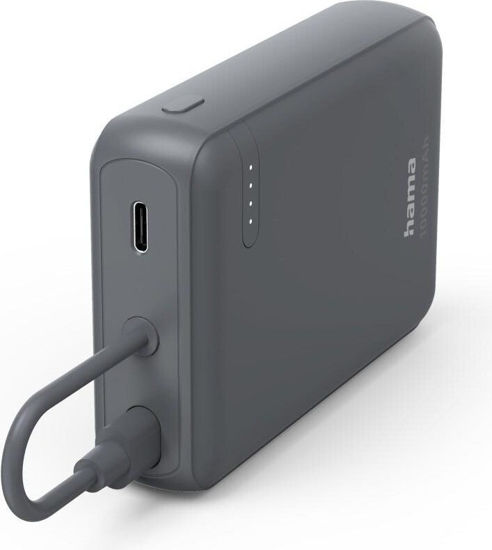 HAMA Външна батерия „Travel“ с кабел, 10000mAh, 2 изхода: 2x USB-C, антрацит
