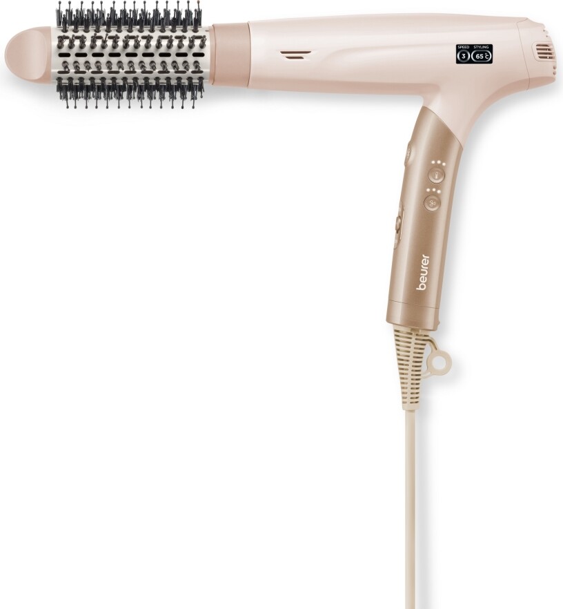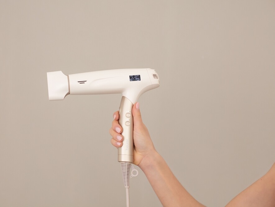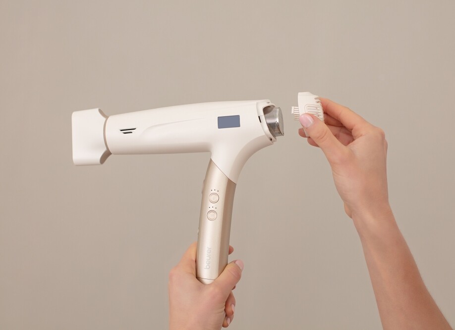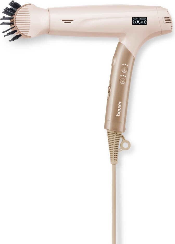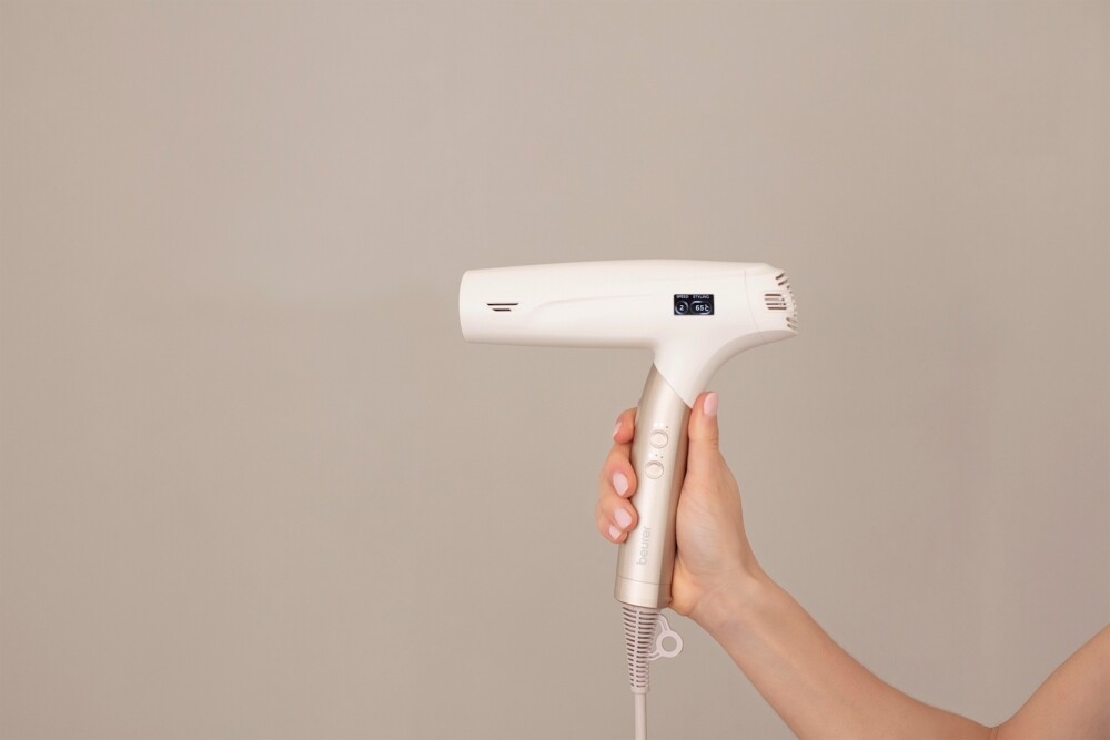 Beurer HC 150 е мощен и ултралек сешоар, който ви позволява да стилизирате косата си бързо, тихо и щадящо - с резултати като от салон, но в уюта на дома. Благодарение на безчетковия 1600 W дигитален мотор сушенето и оформянето стават за минимално време, а вградената йонна функция придава копринен блясък и намалява електризирането на косата. Ергономичният сгъваем дизайн и ултралекото тегло от 365 г го правят удобен за използване, а кабелът се върти на 360°, за да не се усуква по време на работа. LCD дисплеят показва температурата и режима на работа, а магнитните накрайници EasyClick позволяват лесна смяна по време на стилизиране. Изберете идеалния режим за вашата коса - Protect, Styling или Perform - с трите температурни и трите степени на въздушен поток. Функцията за студен въздух фиксира прическата, а автоматичното изключване при прегряване и лесно почистващият се филтър осигуряват безопасна и дълготрайна употреба. Изключително тих - само 70 dB, Beurer HC 150 съчетава сушене и стилизиране в един лесен и ефективен процес, осигурявайки перфектен вид всеки ден.