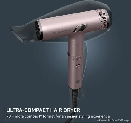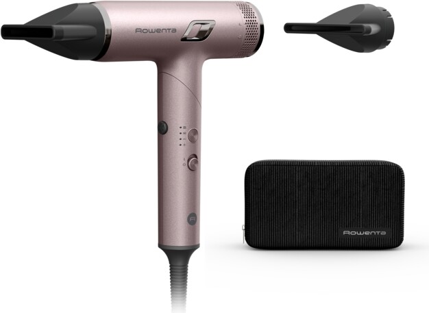 NANO технология от Rowenta: Висока ефективност в компактен, сгъваем дизайн. NANO технологията на Rowenta предлага несравнимо изживяване при сушене. Тази технология осигурява най-високата скорост на въздуха от Rowenta – до 266 km/h, предлагайки цялата мощност на високоскоростния мотор на NANO за ултрабързо и прецизно сушене. Неговият ултрапрецизен температурен сензор контролира температурата 1000 пъти в секунда, за да осигури ефикасно сушене.