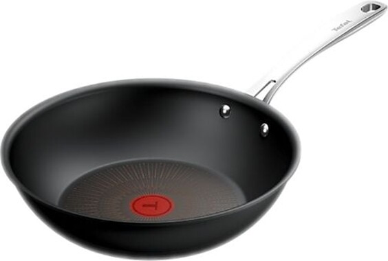Тиганът Tefal Excellence+ G3301902 представлява модерно решение за всеки любител на азиатската кухня и здравословното хранене, съчетаващо издръжливост и иновативни технологии. Този уок тиган с диаметър 28 см е изработен от висококачествен алуминий, който гарантира бързо нагряване, докато неговата дълбока форма позволява лесно разбъркване на големи порции продукти с минимално количество мазнина. Основното предимство на модела е неговото Titanium незалепващо покритие, подсилено с титанови частици, което осигурява изключителна устойчивост на надраскване и дълъг експлоатационен живот. В центъра на дъното е разположен емблематичният индикатор Thermo-Signal, който става плътно червен, когато тиганът е достигнал оптималната температура за готвене. Това гарантира перфектна текстура, цвят и вкус на ястията при всяко ползване.