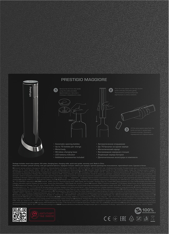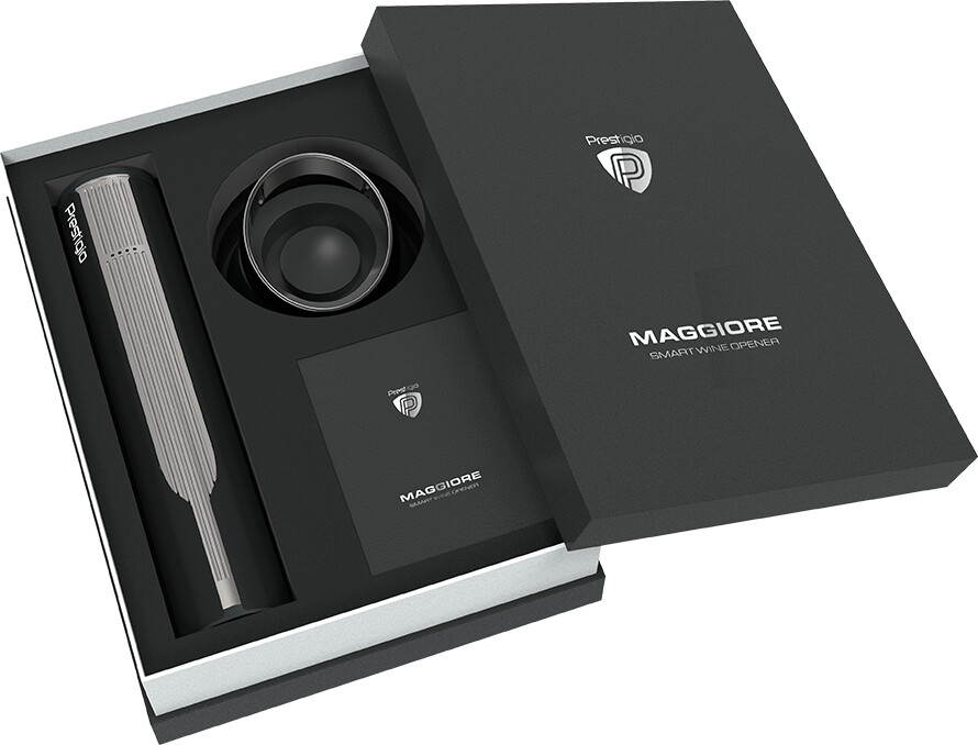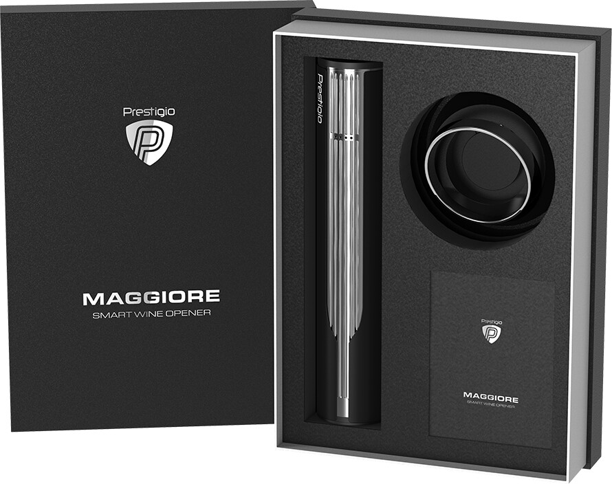 Prestigio Maggiore, smart wine opener, 100% automatic, opens up to 70 bottles without recharging, foil cutter included, premium