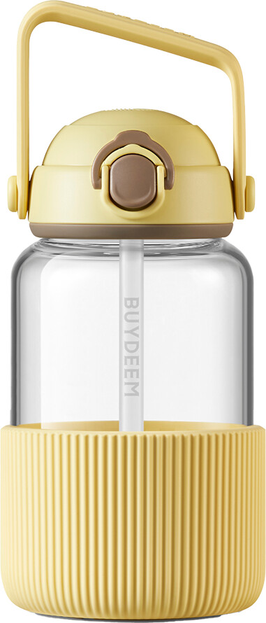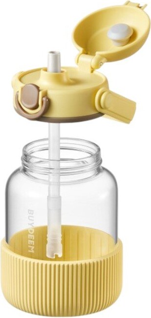 BUYDEEM Pop-Up Straw Glass Bottle, model DG710, color Mellow Yellow