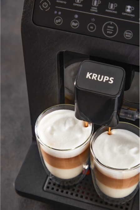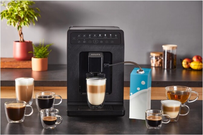 Открийте Krups Evidence Eco-Design, първият кафеавтомат, който съчетава перфектния аромат на кафе и високата степен на персонализиране с екологичен дизайн - за кафе с перфектен аромат и ниско въздействие върху околната среда. Evidence Eco-Design е направен от 62% рециклирана пластмаса, с намален брой компоненти за намаляване на емисиите на CO2 и ресурси, необходими по време на производствения процес, като устройството е до 90% рециклируемо. Технологията Quattro Force оптимизира всяка стъпка от процеса на приготвяне за получаване на перфектния аромат и текстура. Пригответе една или две чаши еспресо наведнъж и използвайте функцията за капучино с едно докосване, за да приготвите до 2 вкусни капучино с натискането на един бутон. Насладете се на 8 рецепти на основата на кафе, лесни или с мляко, и персонализирайте настройките чрез лесния за използване сензорен интерфейс.