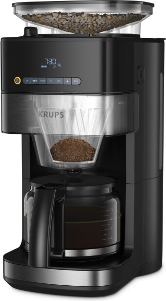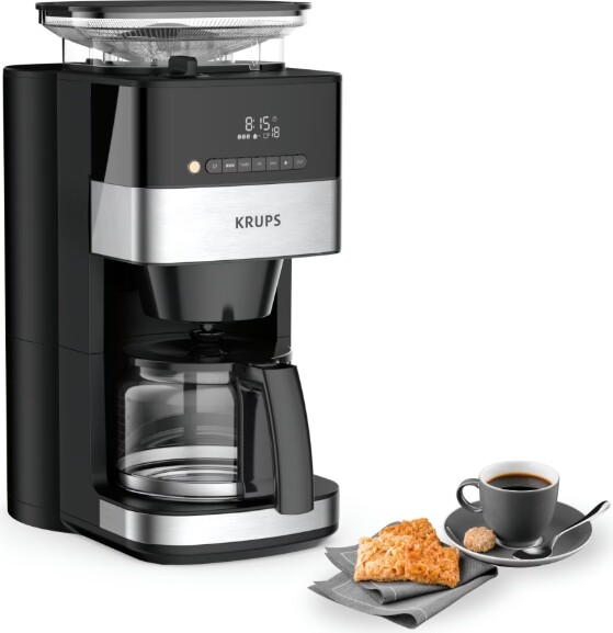 Нищо не може да се сравни с вкуса и аромата на прясно смляното кафе. Машината KRUPS Grind and Brew с мелачка ви предлага това усещане всяка сутрин със съвършена лекота. Автоматичното смилане ви позволява да поставите зърната, да изберете настройките и да оставите Grind and Brew да свърши останалото. Резултатът е най-доброто от кафето в елегантен, съвременен дизайн, подчертан с матирани детайли от неръждаема стомана. Открийте перфектния вкус на кафето с регулируеми настройки за количество и сила за резултати, съобразени с вкуса ви, от меко и ненатрапчиво кафе до силно и зареждащо. Високачествената конична мелачка осигурява безупречно представяне – хомогенни резултати, по-малко слепване, по-тиха работа и подвижни части за лесно почистване – с ясен и интуитивен контролен панел с LED дисплей. С перфектна вместимост за 10 до 15 чаши и редица интелигентни функции, Grind and Brew е комбинирана филтърна машина за кафе и мелачка, която осигурява безкраен вкус ден след ден.