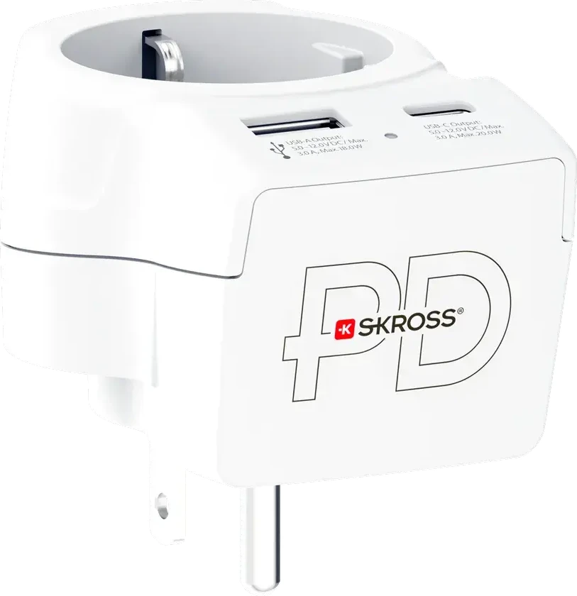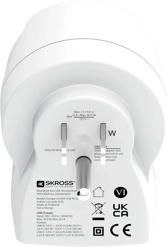 Skross универсален адаптер Europe to USA+1xUSB A/C, 20W , 1500284E