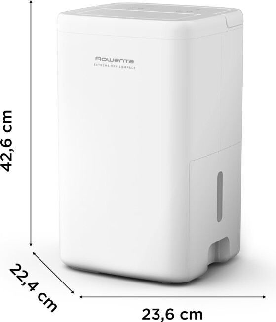 Оптимално ежедневно обезвлажняване по тих начин и с компактен дизайн Открийте високоефективен влагоабсорбатор, който премахва до 14 литра влага на ден. Идеален за пространства до 38 м2 / 95 м2, Extreme Dry Compact се бори с мухъл, прахови акари и миризми, помага за бързото и нежно изсушаване на прането и дори подобрява качеството на въздуха с филтър против прах. Възползвайте се от набор от удобни функции, наблюдение на влажността в реално време, плюс компактен дизайн и тиха работа, която е едновременно дискретна и лесна за носене.