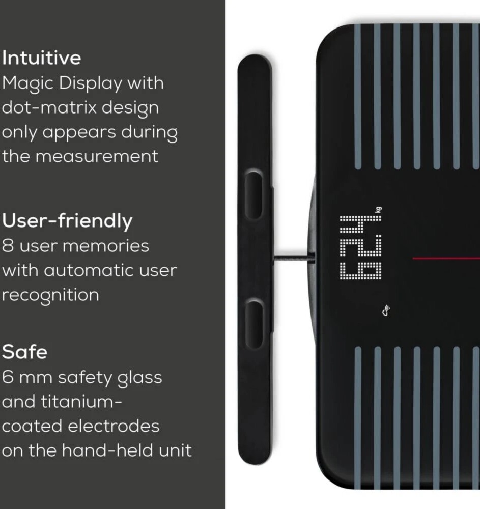 yes, Magic LED display appears only during measurement, Display size: 6.9 cm x 3.2 cm
