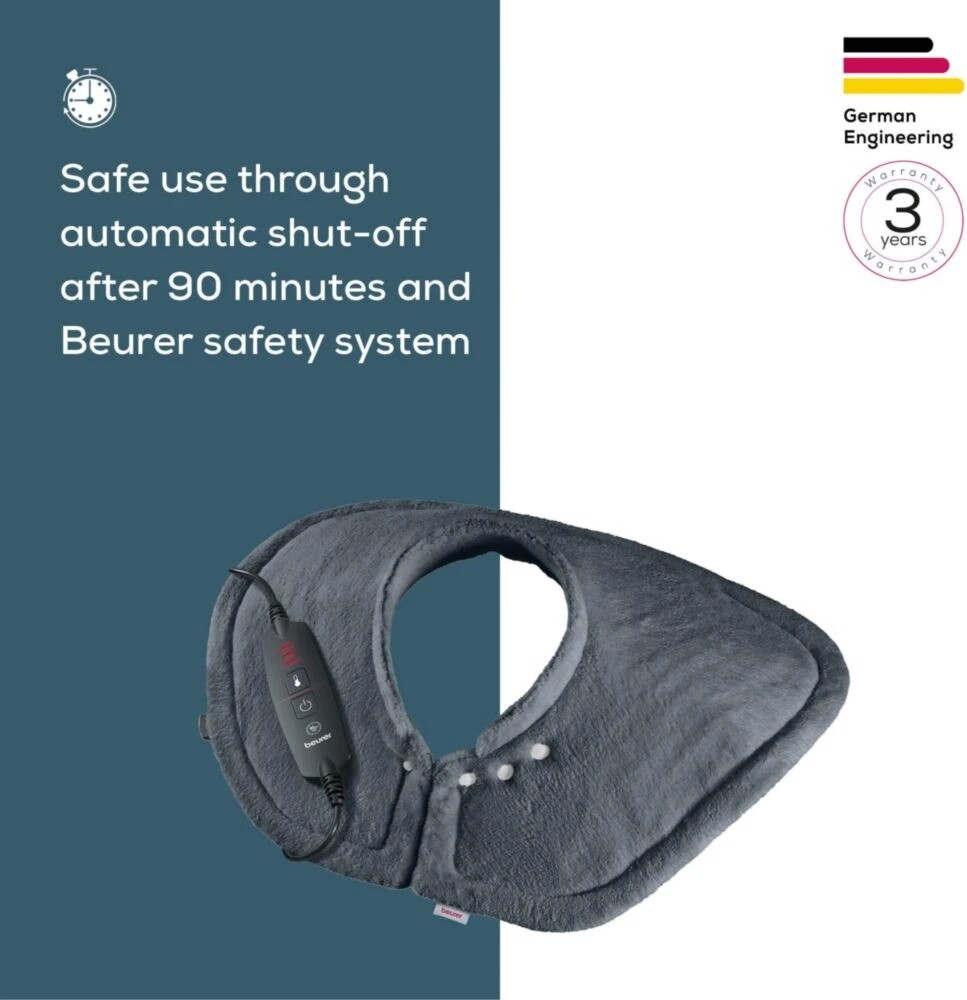 Термоподложка Beurer HK 66 Cosy Grey Shoulder & Neck Heat Pad; 3 temperature settings; auto switch-off after 90 min; washable on