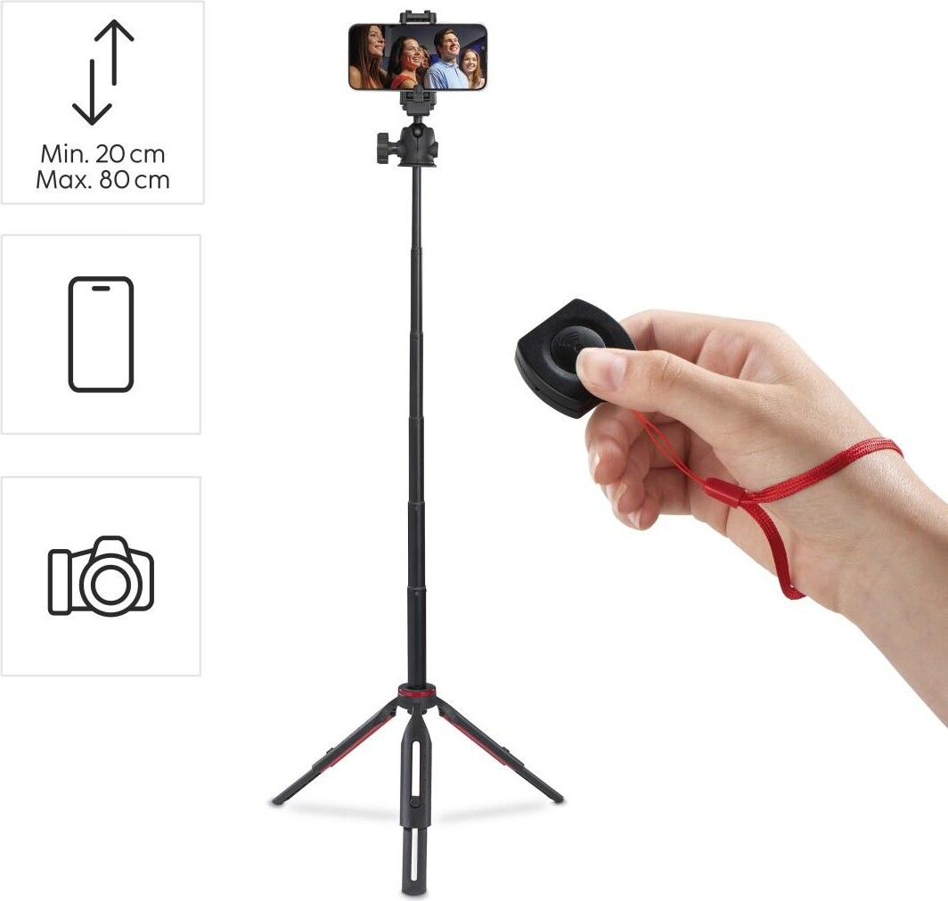 HAMA Трипод “Solid 80 Ball” за смартфони, Bluetooth дистанционно за снимки, макс. 80 см.