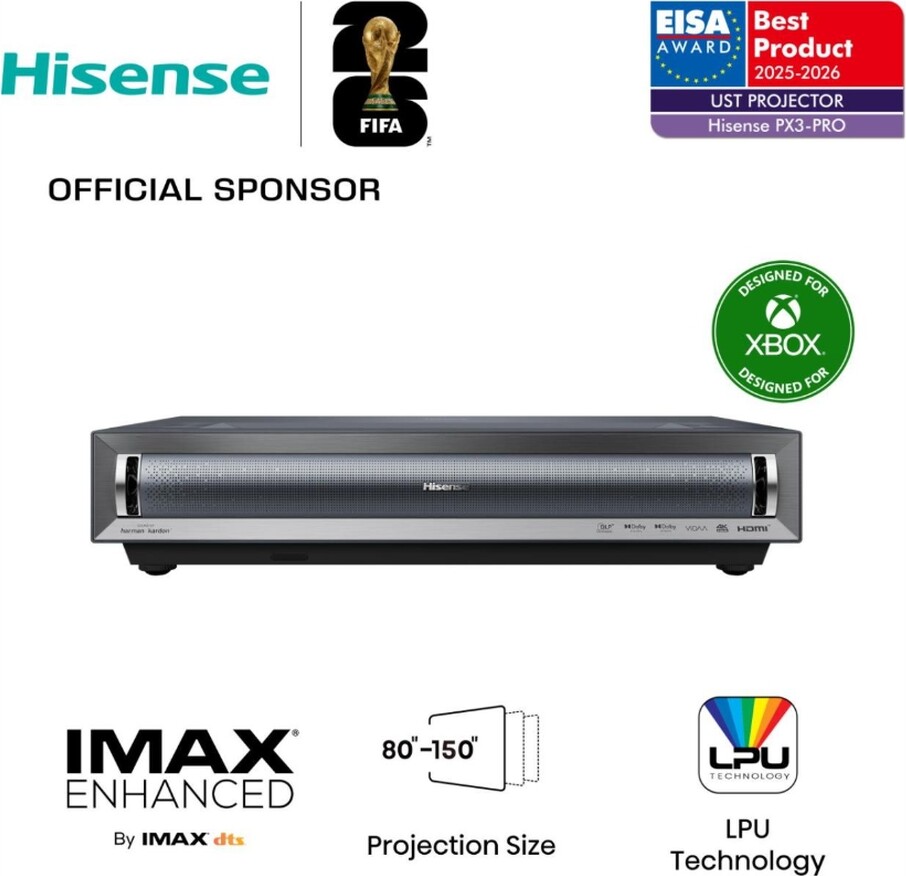 Мултимедиен проектор Hisense projector PX3-PRO Home Cinema, 3000;1,3x HDMI,1x LAN, Black