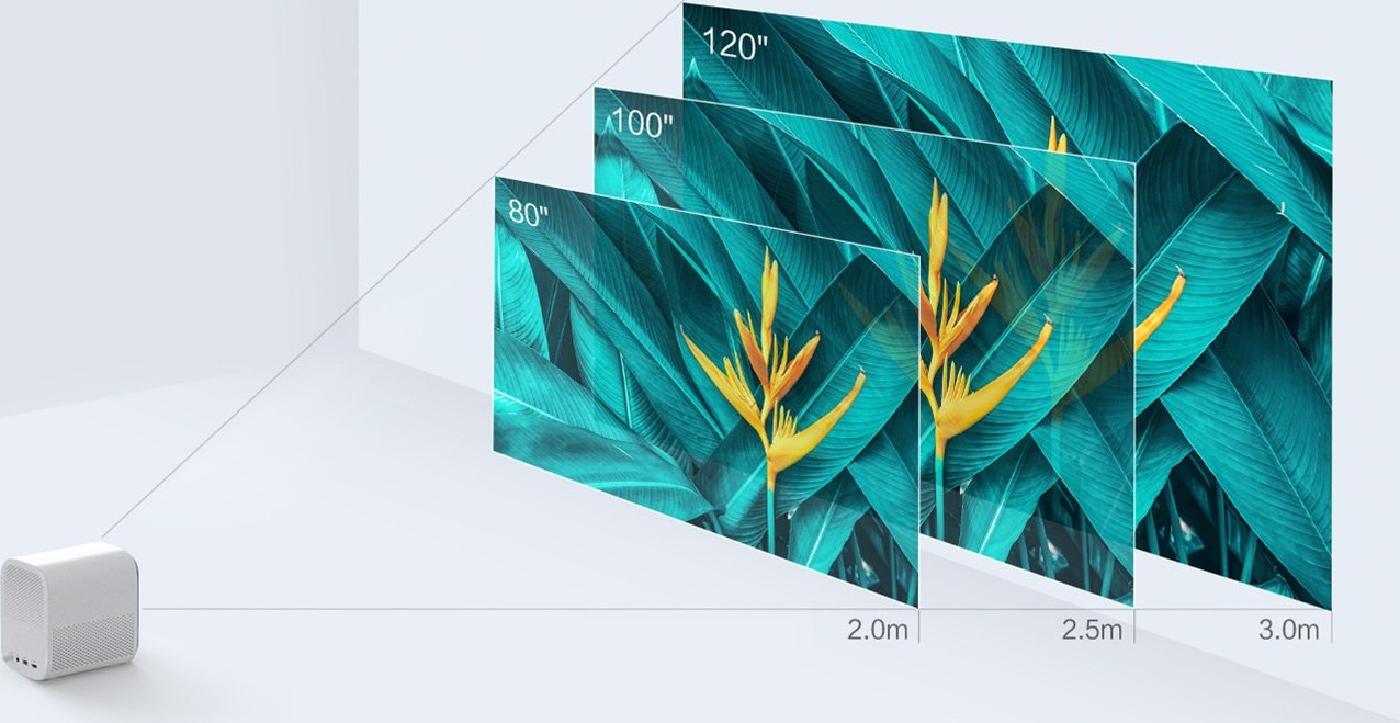 The throw ratio of 1.2:1 is suitable for rooms in most households. You can easily adjust the throw distance to project to a giant screen of 60–120 inches. Watching movies, enjoying concerts and playing games, all on the same wall.