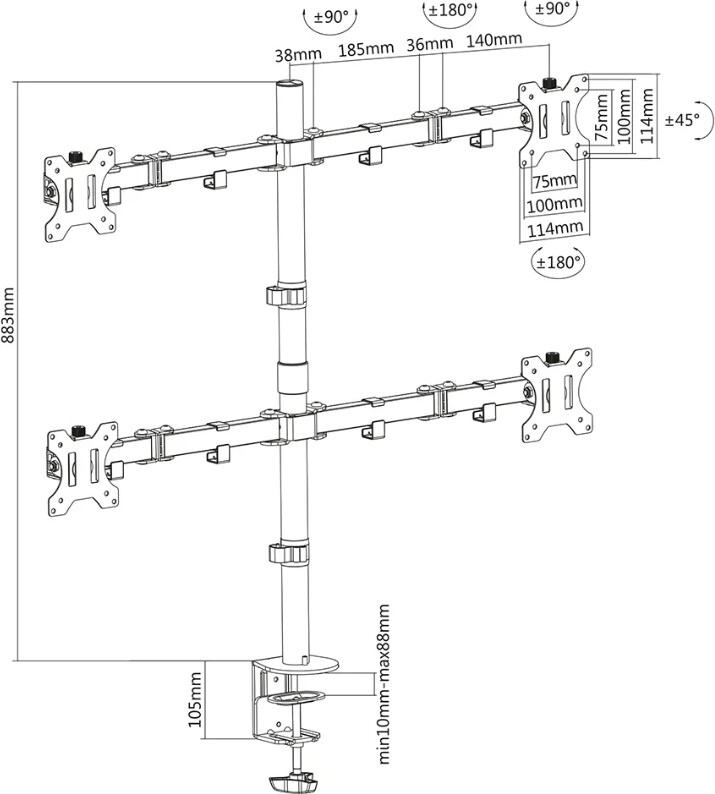 Desk mount: Grommet, Clamp; The smart cable management clips ensure orderly routing of the cables. Additionally, the mount features an Easy-release VESA, that allows you to (de)attach the monitors in a wink of an eye
