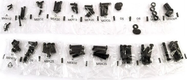 M4x12 (4 pcs) M4x30 (4 pcs) M5x12 (4 pcs) M5x30 (4 pcs) M6x12 (4 pcs) M6x20 (4 pcs) M6x30 (4 pcs)