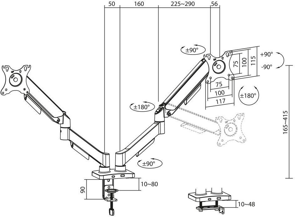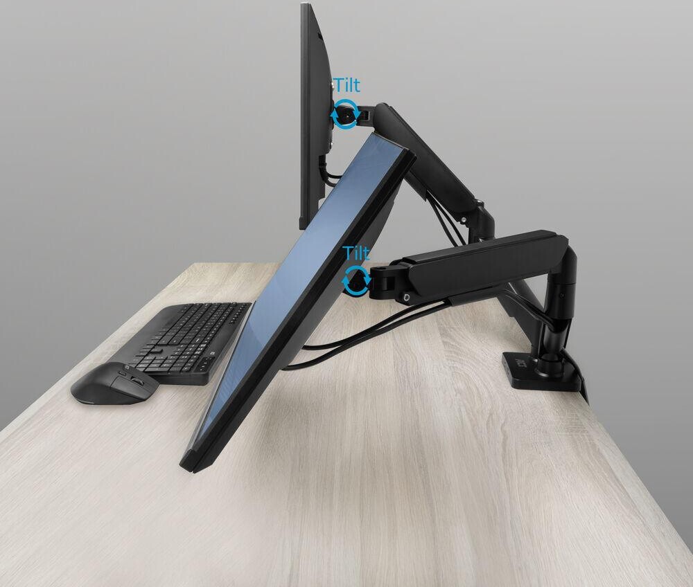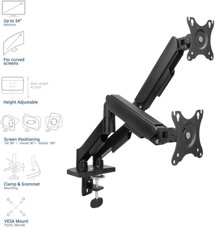 ACT Стойка за 2 бр. монитора за бюро AC8314, Регулируема, 17" - 34", 9 кг, газова пружина