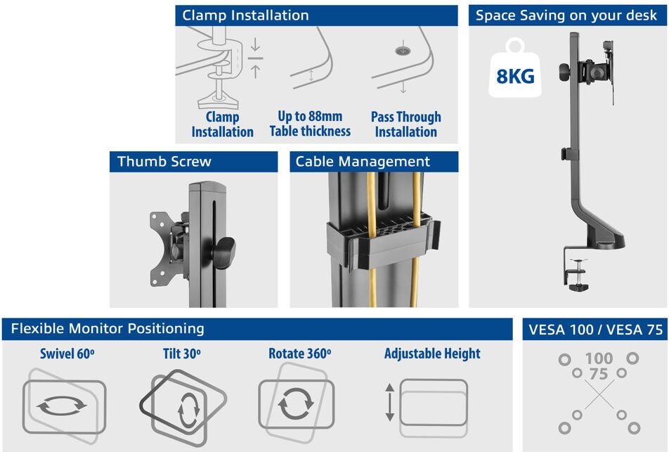 ACT Стойка за 1 бр монитор до 32" с регулиране на височината