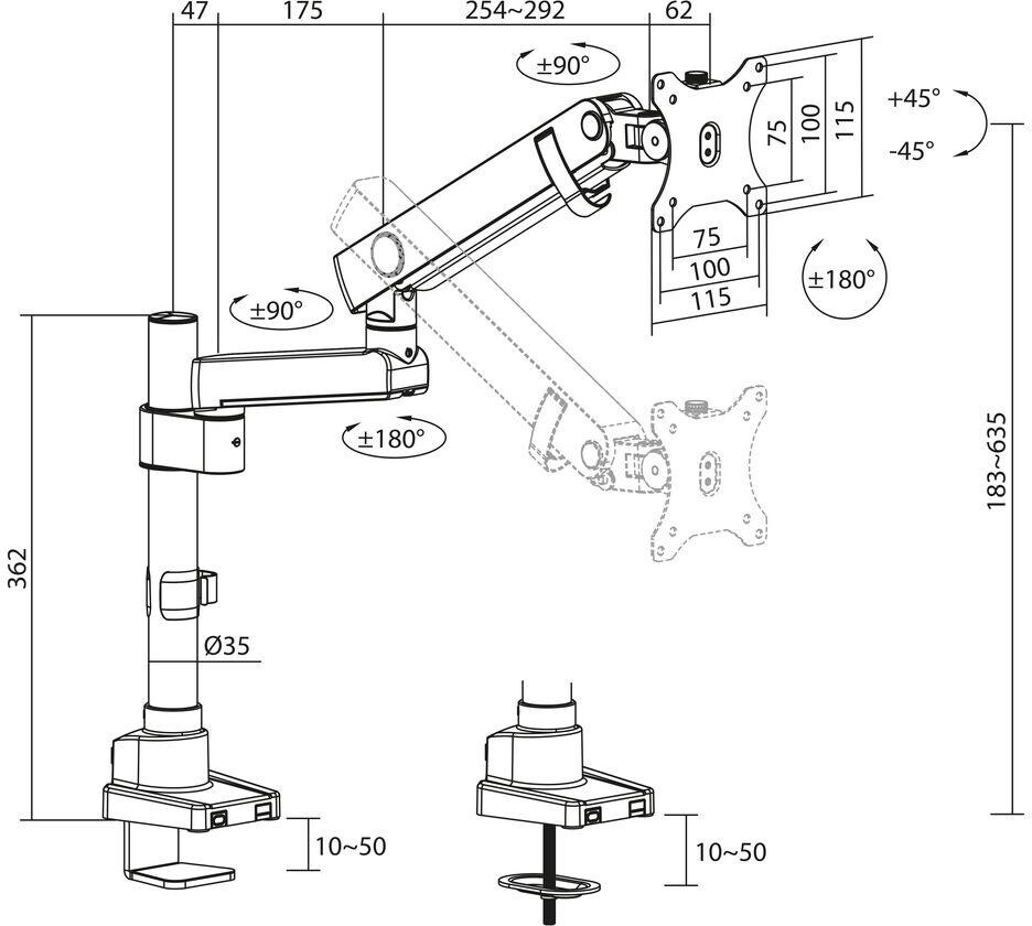ACT Стойка за монитор макс. 40" с едно рамо, пружинен механизъм, до 12кг