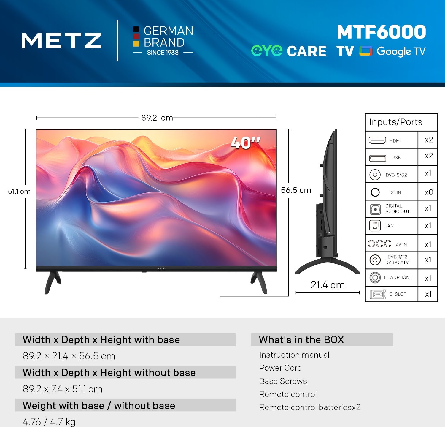 METZ Телевизор 40MTF6000Z 40" FullHD, LED TV, черен
