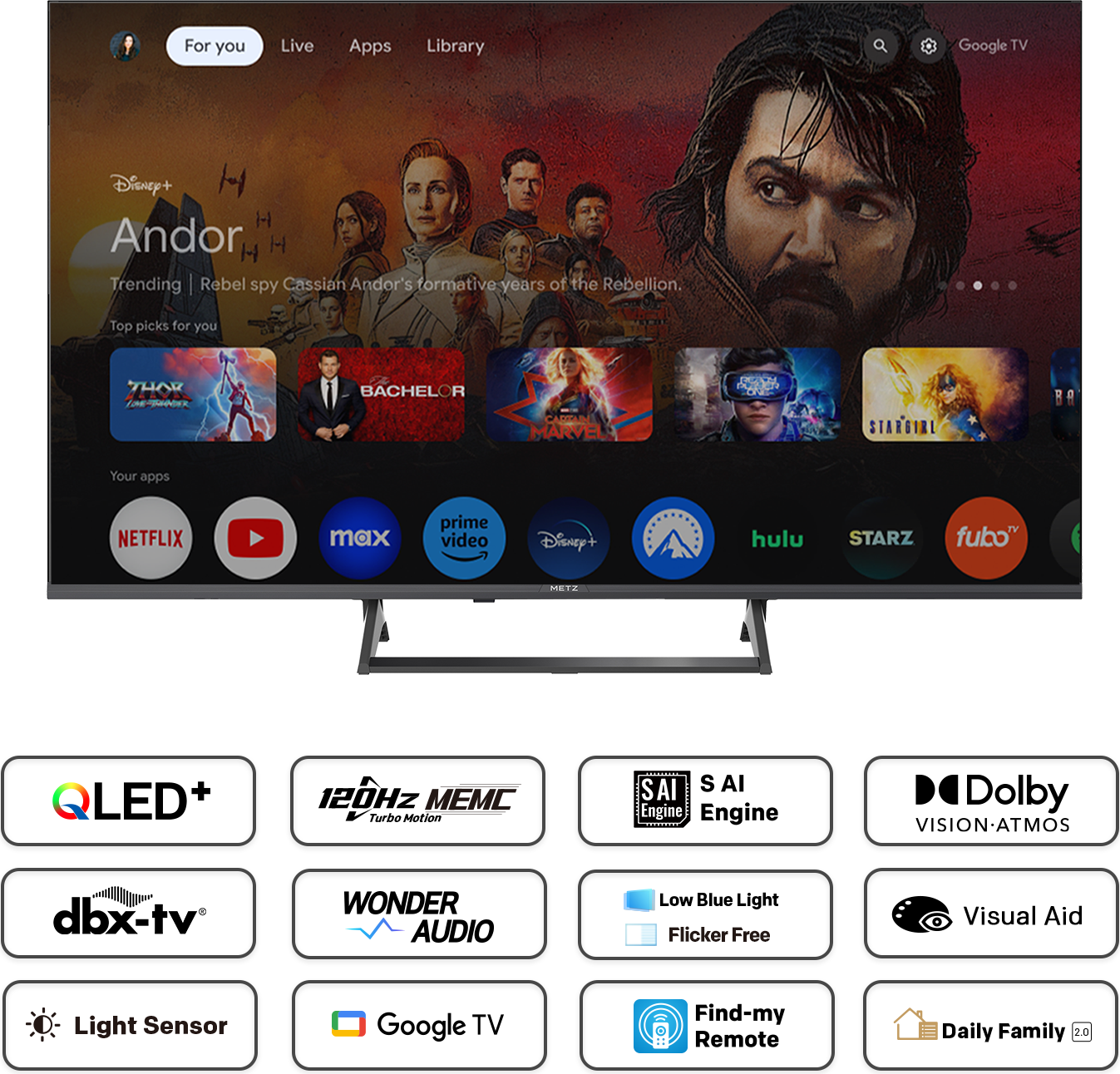 METZ Телевизор 50" UHD QLED SMART TV, 120Hz, 4K, Google TV, 126.0см
