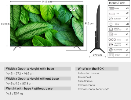 METZ Телевизор 65" UHD LED SMART TV, 4K, Google TV, Frameless