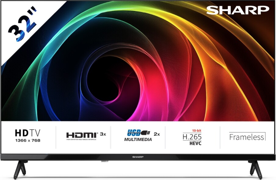 Телевизор Sharp 32HA1205E, 32" LED HD 1366x768 HD Frameless, 100 000:1, DVB-T/T2/C/S/S2, Active Motion 100, Speaker 2x8W, Dolby