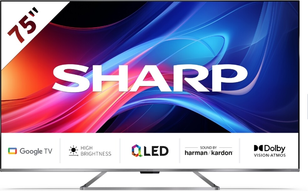 Телевизор Sharp 75GP7265E, 75" QLED Google TV, 4K Ultra HD 3840x2160 Frameless, AQUOS, DVB-T/T2/C/S/S2, Active Motion 1200, HDR1