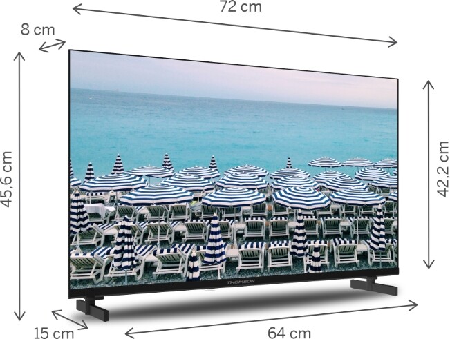Телевизор Thomson 32"HD Easy TV; 1366 x 768 (HD), DLED, 60 Hz, DVB-T/T2/C/S/S2,HDMI 3 (1.4), USB 2 (2.0), S/PDIF 1x coaxial, AV