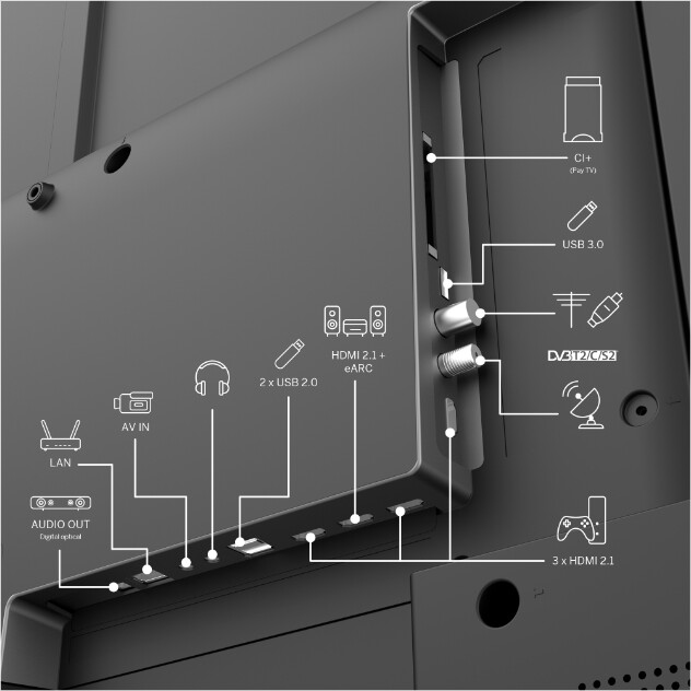 | Изводи за свързване: | 4 HDMI, 3 USB, CI+ slot, SPDIF optical, HEVC/H.265 |