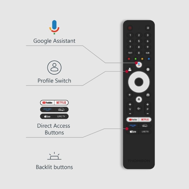 Телевизор Thomson 50" QLED Google TV; 3840 x 2160 (4K UHD), 4000:1, QLED, 60 Hz, DVB-T/T2/C/S/S2, HDR10, Wi-Fi, Bluetooth, LAN,