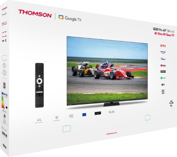 Телевизор Thomson Smart QLED Pro TV 65"; Google TV; 3840 x 2160 (4K UHD), DLED, 144 Hz, DVB-T/T2/C/S/S2, HDR10, Wi-Fi, Bluetooth