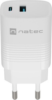 Адаптер Natec USB Charger Ribera Gan 1X USB-A + 1X USB-C 30W, White