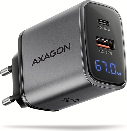 AXAGON ACU-PQ67D - PD3.0 & QC4+ 2xOUTPUTS, LCD display, wall charger 67W