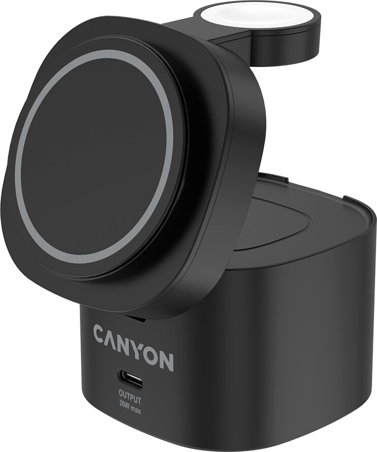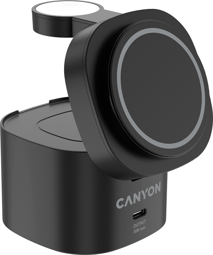 Canyon 4 in 1 Wireless Charging Stand, 30W max, Size: 70x70x70.3mm, weight: 414g, with 65W charger and 1M cable, black