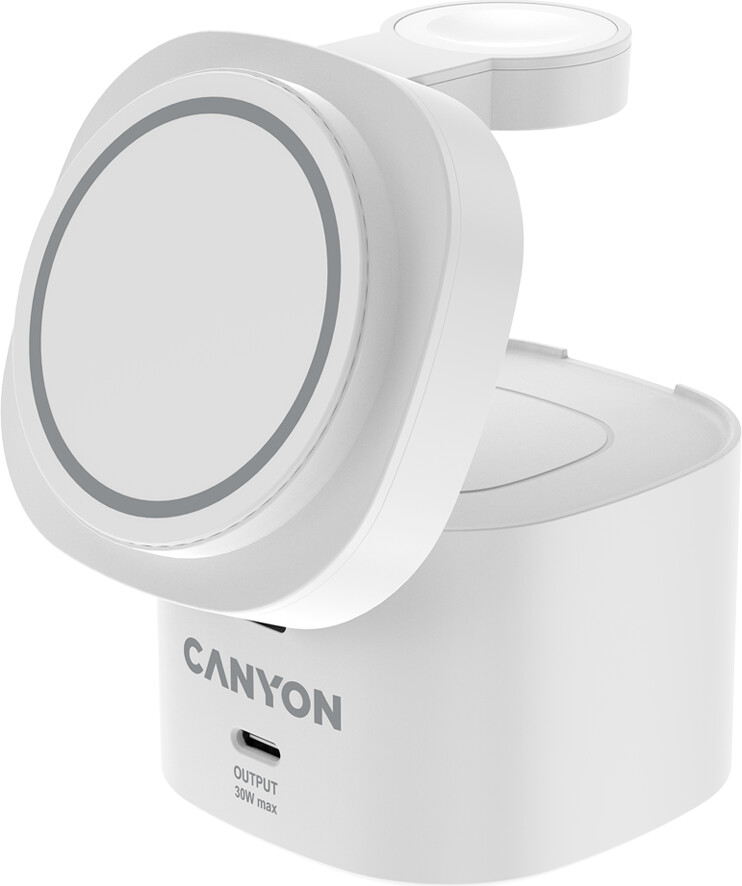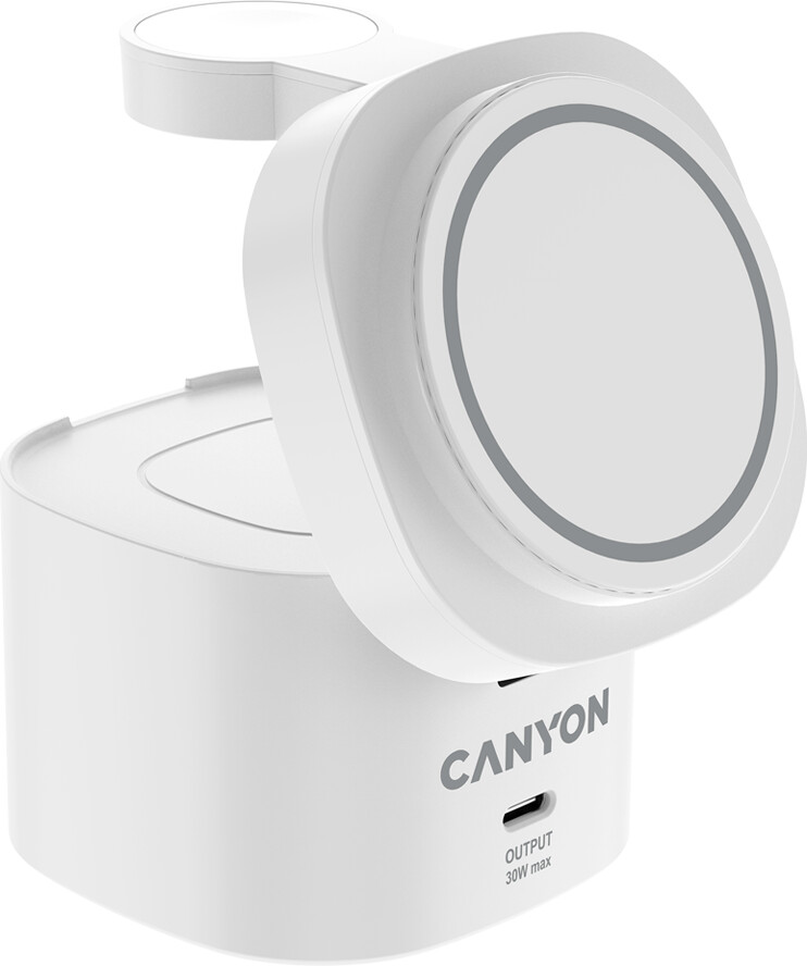 Canyon 4 in 1 Wireless Charging Stand, 30W max, Size: 70x70x70.3mm, weight: 414g, with 65W charger and 1M cable, white