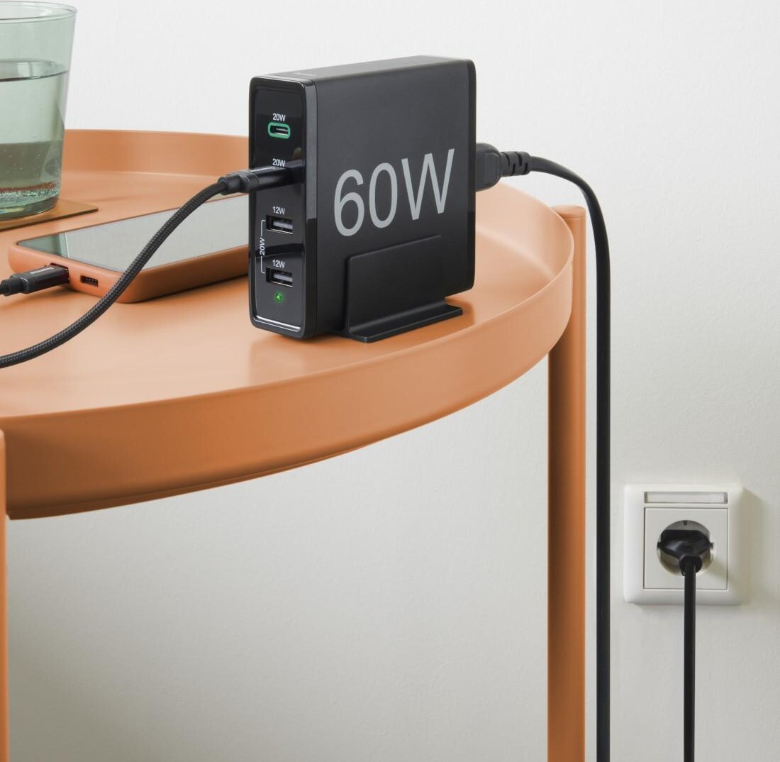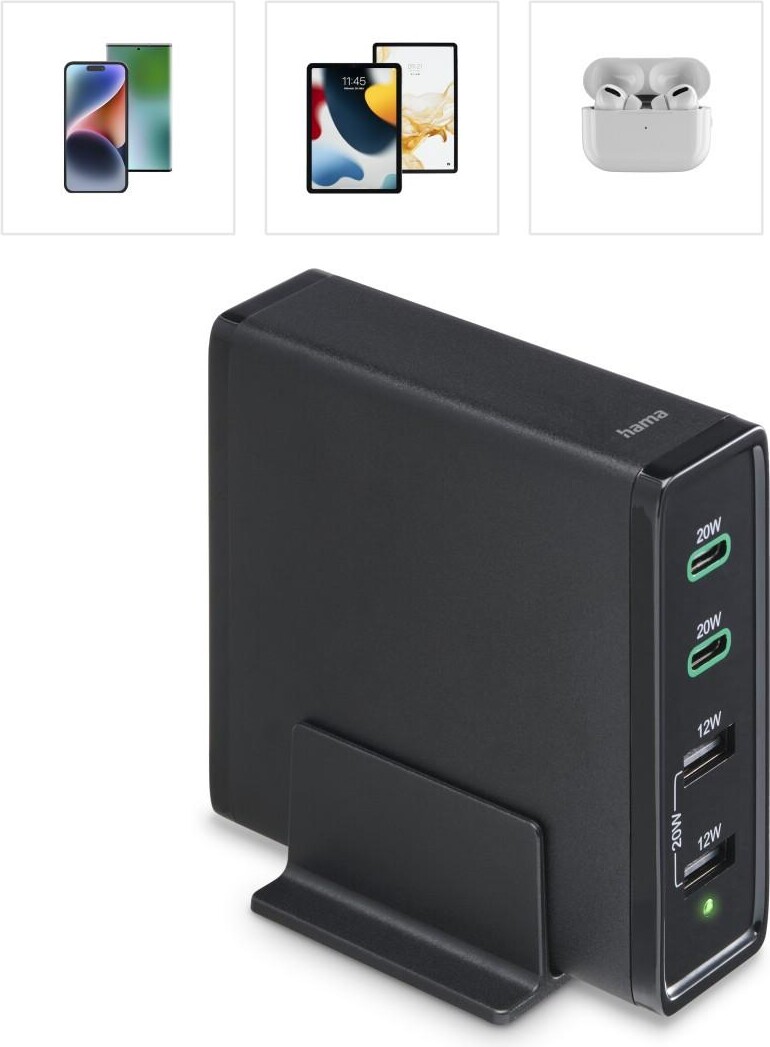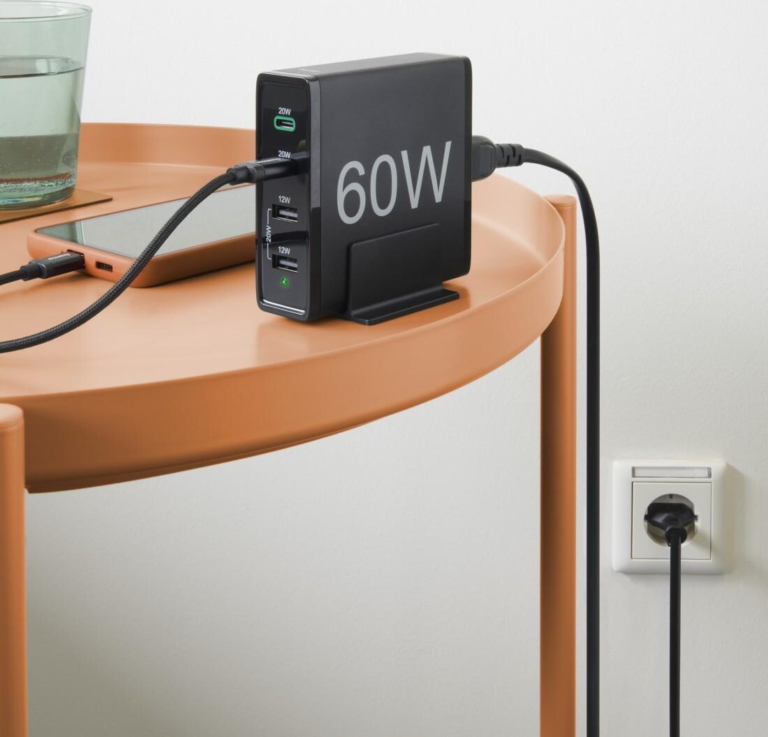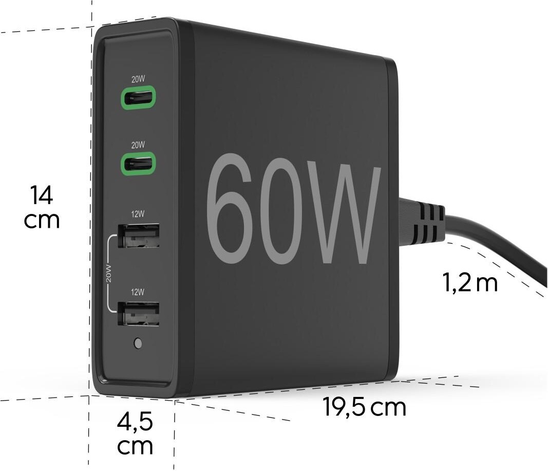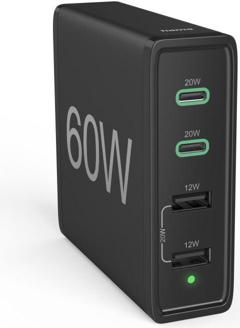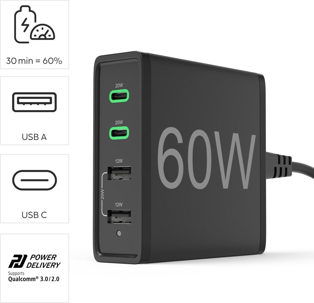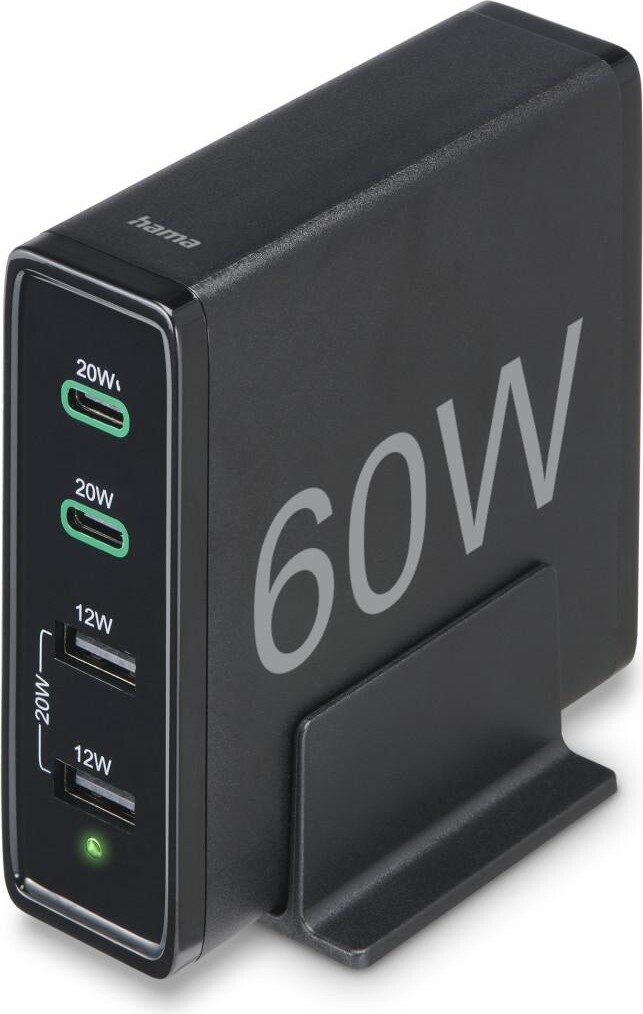 HAMA Зарядна станция 4 порта, 60W, 2 x USB-C, 2 x USB-A, PD, Fast Charge