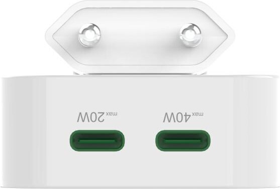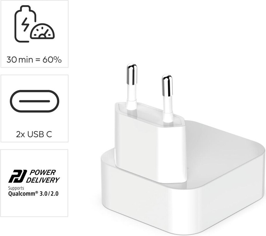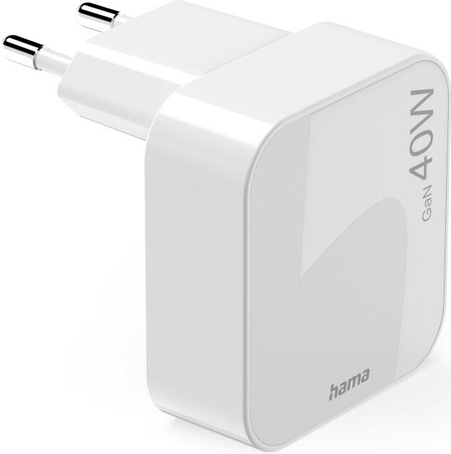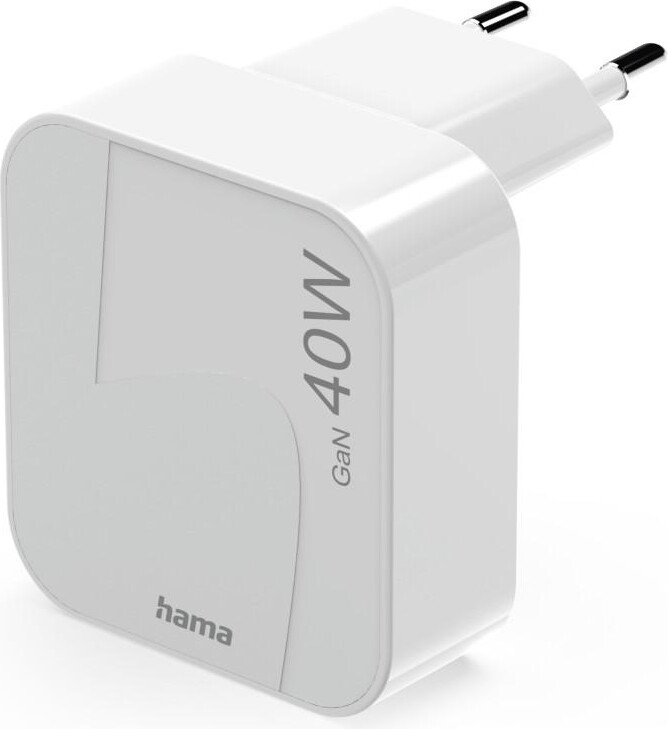 HAMA Бързо мини зарядно GaN, 2 x USB-C, PD, 40 W, сгъващ се адаптер, бял