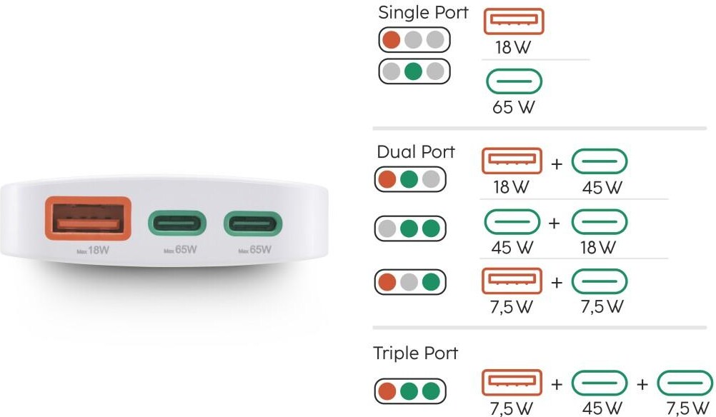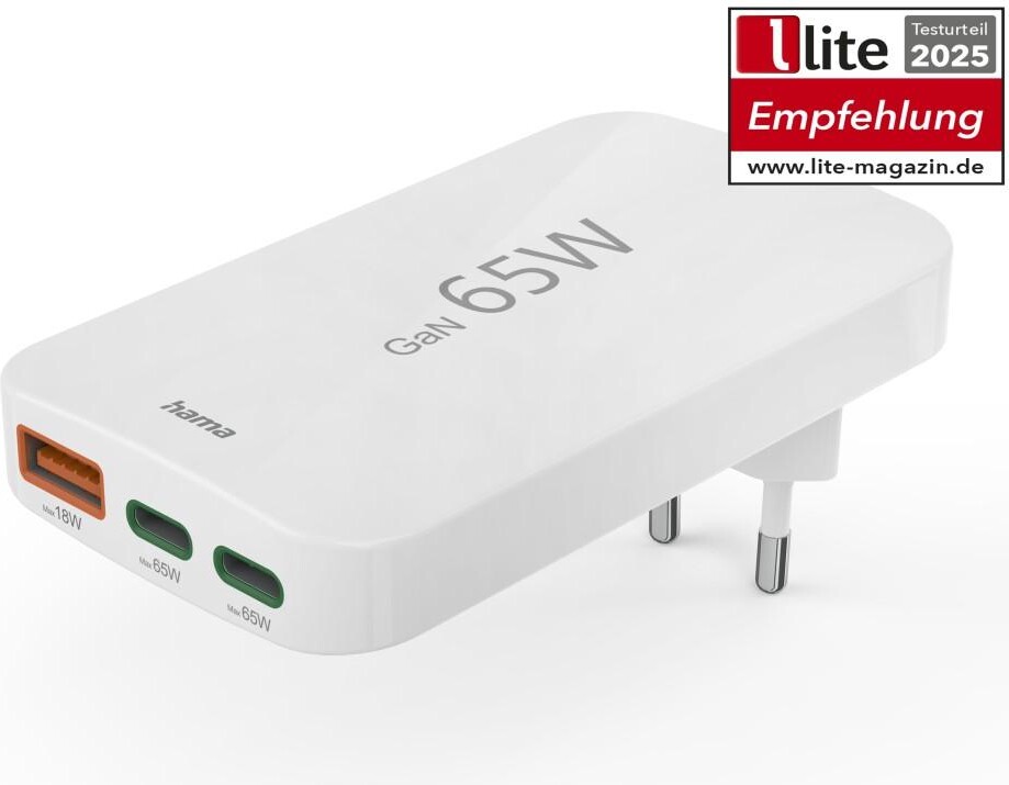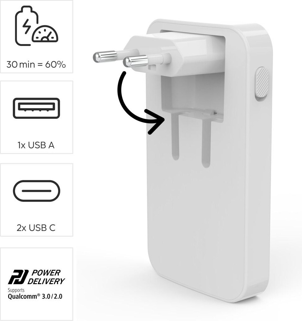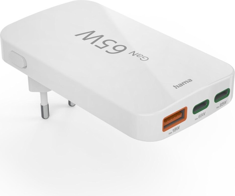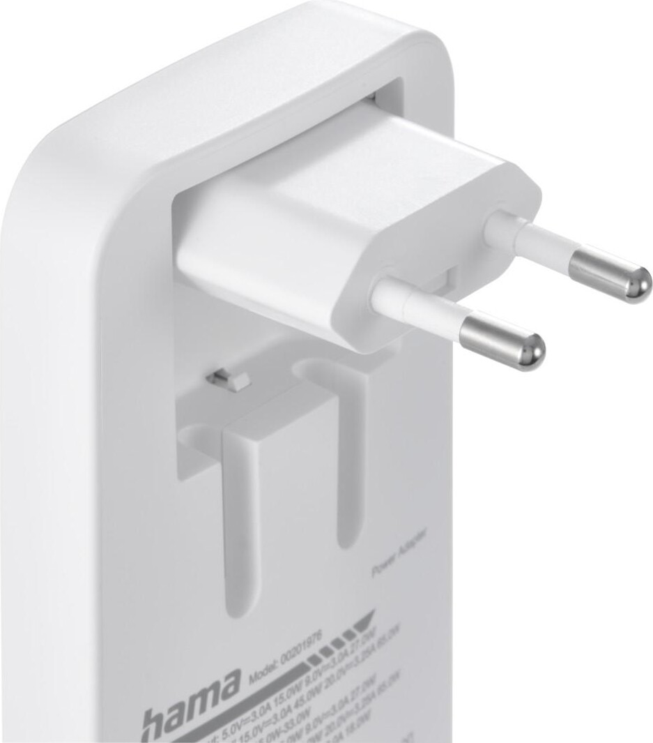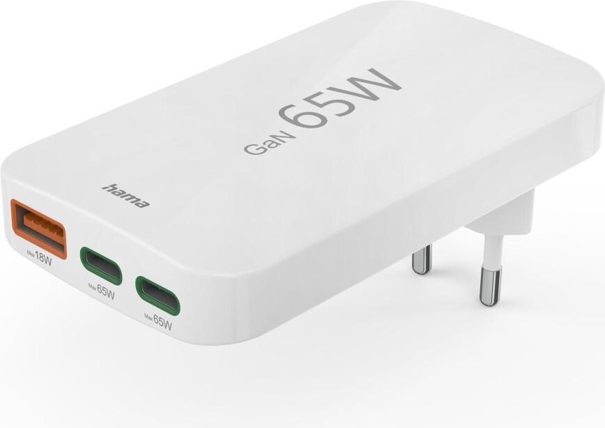 HAMA Бързо мини зарядно, 65W, 2x USB-C, 1x USB-A, PD, плоско, бяло