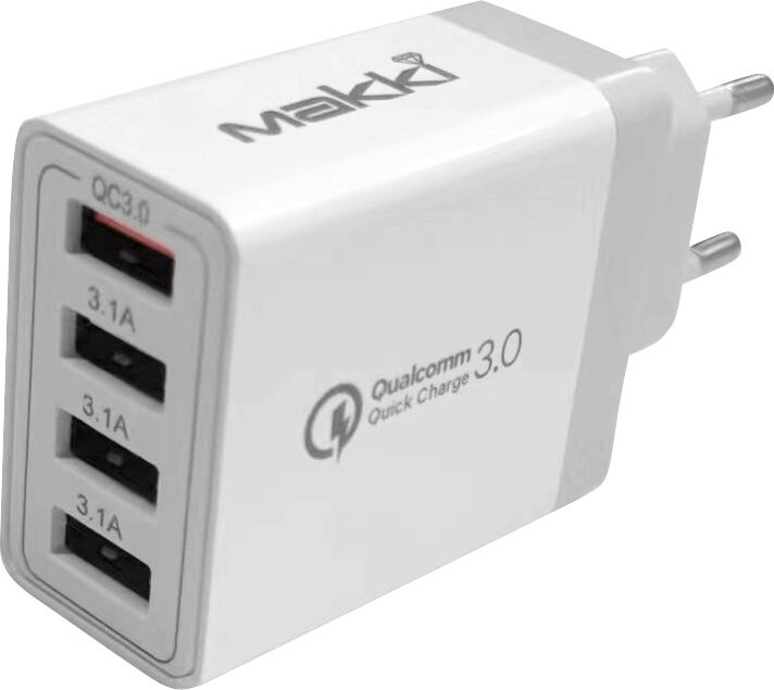 Makki бързо зарядно Fast Charger - QC3.0+3xUSB 30W White - MAKKI-QC48W4
