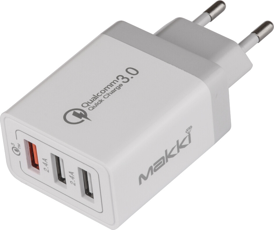 Makki бързо зарядно Fast Charger - QC3.0+2xUSB 30W White - MAKKI-QC30W3