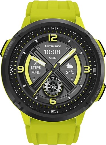 Часовник HiFuture MIX3 Fluorescent Yellow, 1.43" AMOLED, 466*466, Powered by Dual Core & Syntra AI, Bluetooth Call, 3ATM Waterpr