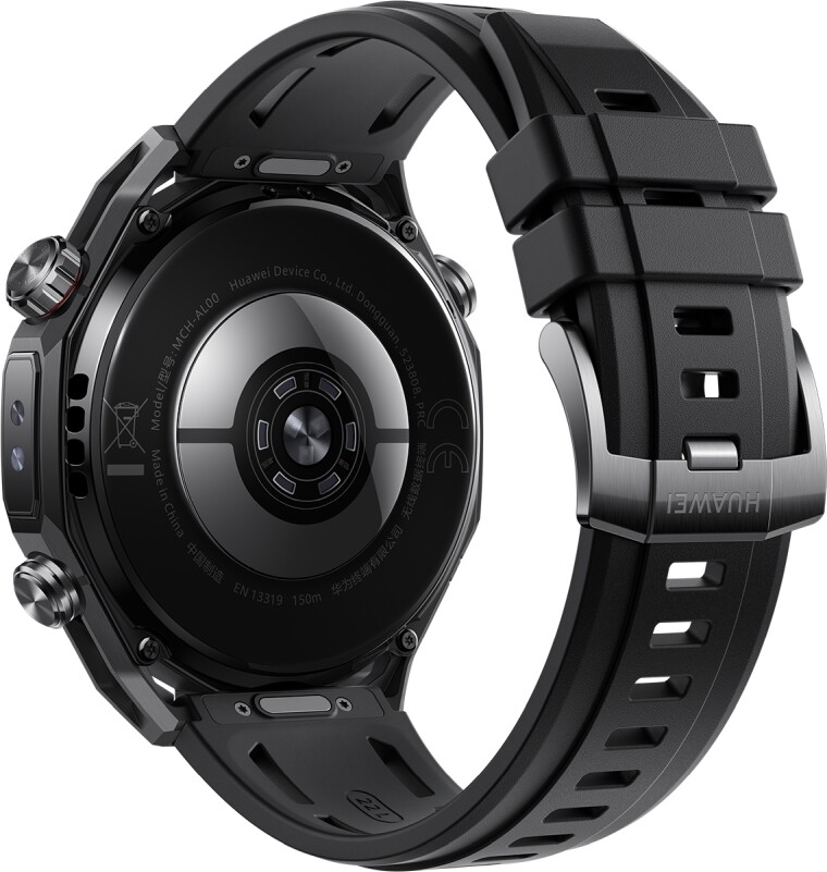 Корпус от аморфен метал. Технология за гмуркане do 150 м. Сонарно-базирана комуникация под вода. Мултисензорна X-TAP технология. С осмоъгълен изтънчен корпус и керамичен безел, часовникът е конструиран да е едновременно лек и издръжлив, здрав и елегантен. Големият 1.5-инчов LTPO дисплей се отличава с пикова яркост от 3500 нита за висока яснота при слънчева светлина на открито. Двуцветни керамични безели, изработени с нанотехнология, и вълнообразна каишка от флуороеластомер. Перфектно прилягане за успокояващ комфорт. Ултранадеждност. С корпус от течен метал с твърдо покритие на циркониева основа, часовникът предлага керамичен безел, изработен с нанотехнология, и сапфирено стъкло за изключителна издръжливост и устойчивост. Гмуркайте се по-дълбоко, гмуркайте се по-интелигентно. Първият в света смарт часовник за гмуркане на 150 метра с аудио функции на сушата с иновативна водоустойчива конструкция за безопасни морски приключения. Най-добрата в класа си мини-сонарна технология позволява бързо изпращане на съобщения под вода, за да осигури безпроблемна комуникация. Първото по рода си революционно самостоятелно решение за подводна комуникация, базирано на сонар. Компактният сонарен модул позволява обмен на съобщения до 30 метра, което оставя традиционните жестове и светлинни сигнали в миналото. Интуитивен дисплей на данни. С яркия си екран, важните данни за гмуркане са видими и четливи само с един поглед, включително дълбочина, време, скорост, NDL и PO2 и други.Прегледайте историята на подводните съобщения на китката си. Всички данни за гмуркане са достъпни на часовника и в приложението Huawei Health за споделяне или анализ, за да можете да планирате следващото си приключение. По-мощната антенна система оптимизира сигналите интелигентно въз основа на сценариите за използване на мрежата за максимална производителност. Независимо дали става въпрос за eSIM разговори или навигация, тя осигурява бързи и стабилни връзки. Режим на голф игрище на ново ниво. Общо 17000+ мащабируеми карти на игрищата по целия свят, траектории на топката и още. Стратегизирайте замаховете си както никой друг. Мобилни eSIM разговори без нужда от телефон. Системата HUAWEI TruSense с технологията Multi-Sensing X-TAP разширява събирането на данни от китката до върховете на пръстите, което прави наблюдението на здравето по-удобно и прецизно. Превключете в режим на пестене на енергия за 3 секунди за продължителна употреба, часа или останете в стандартен режим за пълна функционалност. Максимален живот на батерията от 18 часа за режим гмуркане (12 часа с включен SUC), 40 часа за режим експедиция, 24 часа за режим голф и 22 часа за режим бягане по пътека.