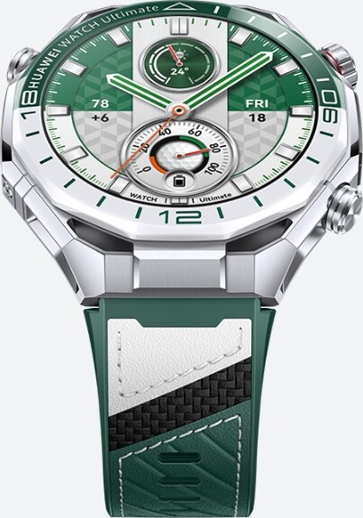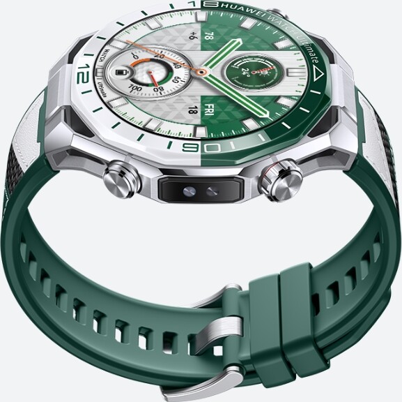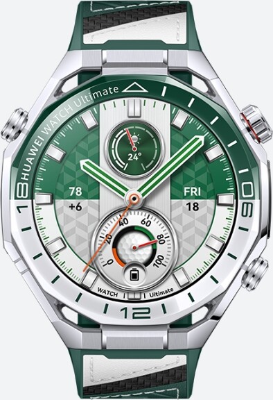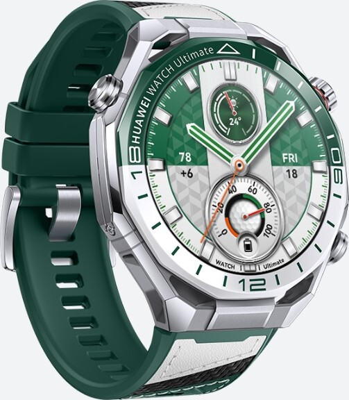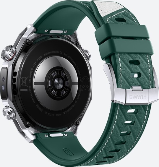 С осмоъгълен изтънчен корпус и керамичен безел, часовникът е конструиран да е едновременно лек и издръжлив, здрав и елегантен. Големият 1.5-инчов LTPO дисплей се отличава с пикова яркост от 3500 нита за висока яснота при слънчева светлина на открито. Зелено-бял керамичен безел, изработен с нанотехнология, и каишка от композитна еко кожа. Идеален избор за меко и приятно усещане. Ултранадеждност. С корпус от аморфен метал с твърдо покритие на циркониева основа, часовникът предлага керамичен безел, изработен с нанотехнология, и сапфирен кристал за изключителна издръжливост и устойчивост. Предефинирайте голф играта си. От усъвършенстване на техниката до доминиране на игрището, изпитайте непоколебима увереност и прецизност с персонализирана помощ, която Ви позволява да оптимизирате всеки удар. Режимът съчетава усъвършенствано разпознаване на удари с топката с подробен анализ на производителността, гарантирайки, че ще стъпите на игрището в най-добрата си форма. Без усилие добавяйте и превключвайте между стикове, като същевременно записвате подробни анализи на замаха за всеки един от тях. Разберете и овладейте всеки стик във Вашия арсенал с прецизност, основана на данни. Отключете идеалното си голф изживяване с достъп до нашата база данни с над 17000 голф игрища, включваща зашеметяващи гледки към голф грийна и интуитивни данни за игрището за несравнима увереност при всеки замах. Гмуркайте се по-дълбоко, гмуркайте се по-безопасно. Първият в света смартчасовник за гмуркане на 150 метра с аудио функции на сушата с иновативна водоустойчива конструкция за безопасни морски приключения. Най-добрата в класа си мини-сонарна технология позволява бързо изпращане на съобщения под вода, за да осигури безпроблемна комуникация. Първото по рода си революционно самостоятелно решение за подводна комуникация, базирано на сонар. Компактният сонарен модул позволява обмен на съобщения до 30 метра, което оставя традиционните жестове и светлинни сигнали в миналото. По-мощната антенна система оптимизира сигналите интелигентно въз основа на сценариите за използване на мрежата за максимална производителност. Независимо дали става въпрос за eSIM разговори или навигация, тя осигурява бързи и стабилни връзки. Независими eSIM разговори с AI шумопотискане за ясни разговори без телефон. Шумопотискане при разговори с оценка 5 звезди. Системата HUAWEI TruSense с технологията Multi-Sensing X-TAP разширява събирането на данни от китката до върховете на пръстите, което позволява по-цялостни и отзивчиви прозрения за Вашето състояние. Превключване към режим „Пестене на батерия“ след 3 секунди за удължена употреба или оставане в „Стандартен” за пълна функционалност. Максимален живот на батерията от 18 часа за режим "Гмуркане" (12 часа с включен SUC), 40 часа за режим "Експедиция", 24 часа за режим "Голф" и 22 часа за режим "Бягане по пътеки". Бъдете готови за деня си само с 15 минути бързо безжично зареждане, използвайки безжичното зарядно устройство HUAWEI WATCH SuperCharger (2-ро поколение), включено в кутията.