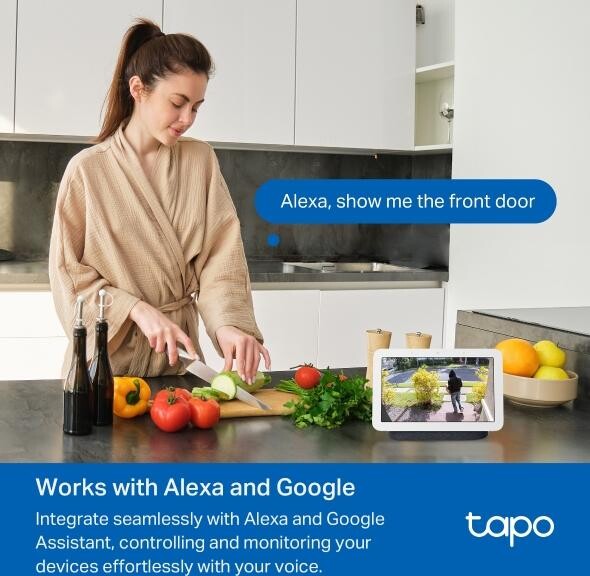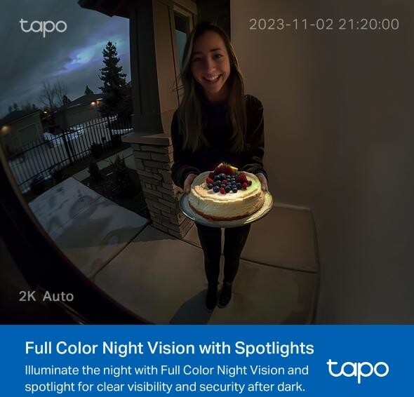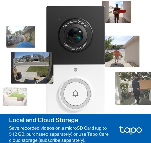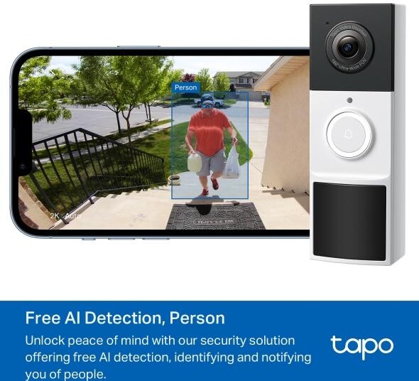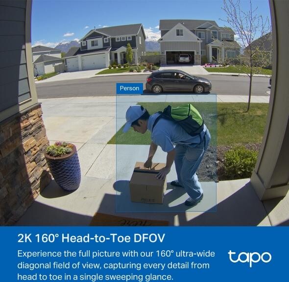 TP LINK нтелигентен видео звънец за врата Tapo D210, 2K QHD (2560×1440),160° зрителен ъгъл, microSD до 512 GB, 2.4Ghz, AI-разпоз