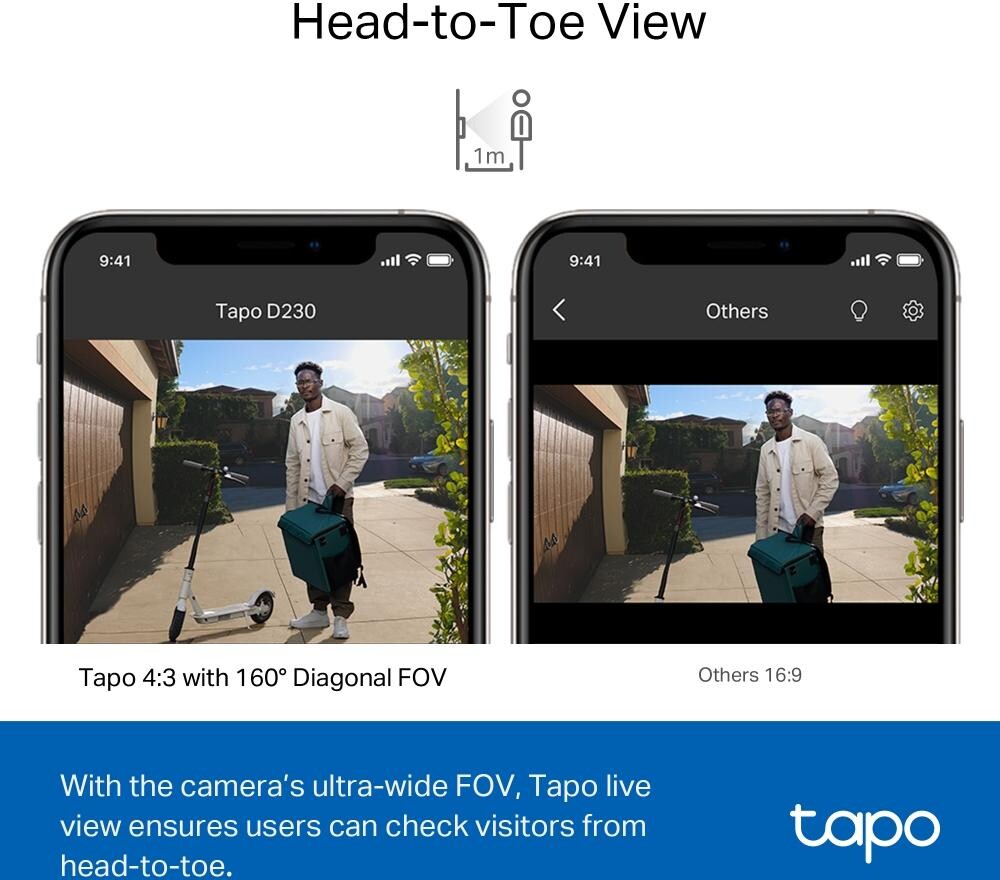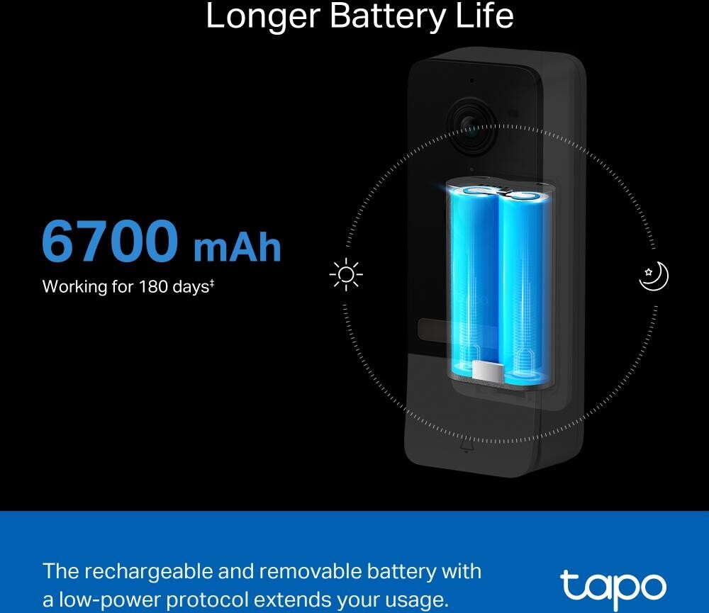 Видео звънец за врата Tapo D230S1, 2.4Ghz, 2K 5MP, Color Night Vision, акум.батерии, microSD